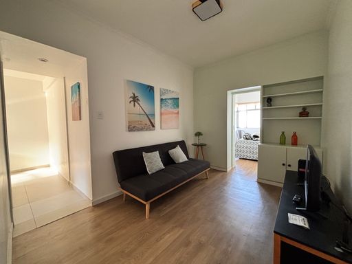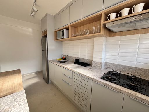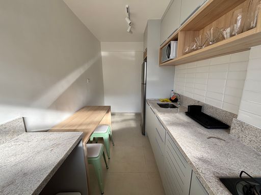 Totalmente mobiliado, incluindo móveis, geladeira, fogão, micro-ondas, TV, lustres e ducha. Prédio permite Airbnb!!!