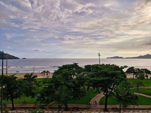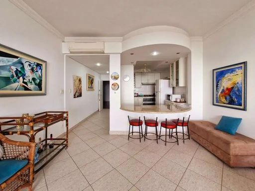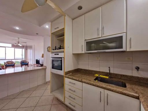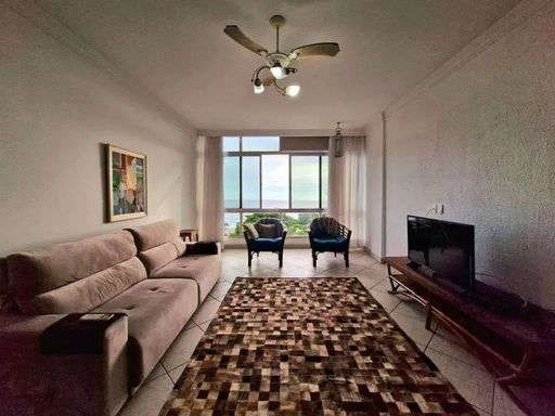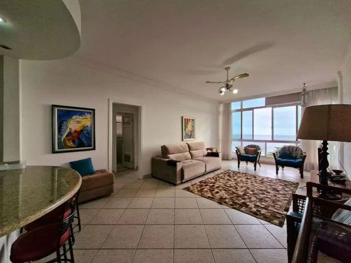 Apartamento encantador com uma vista frontal para o mar de tirar o fôlego. Planta ampla, com pé direito muito alto, e já modernizada com a seguinte configuração: