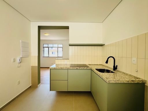 Cozinha com piso novo em porcelanato