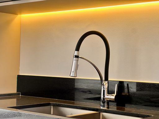Boiler e pressurizador nas torneiras dos banheiros, chuveiros e cozinha.