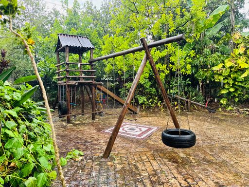 Jardim com árvores frutíferas e horta