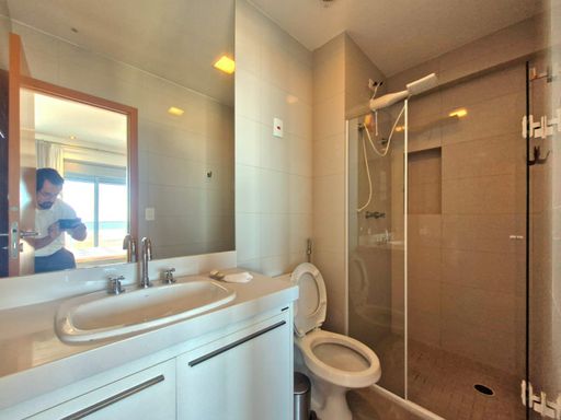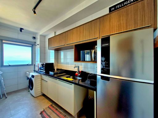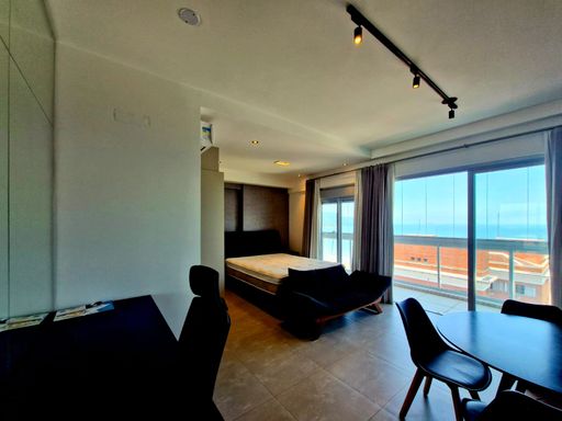 **Apartamento á venda tipo Studio com 48m², mobiliado, em andar alto, vista para o mar e 01 vaga de garagem demarcada no térreo**
